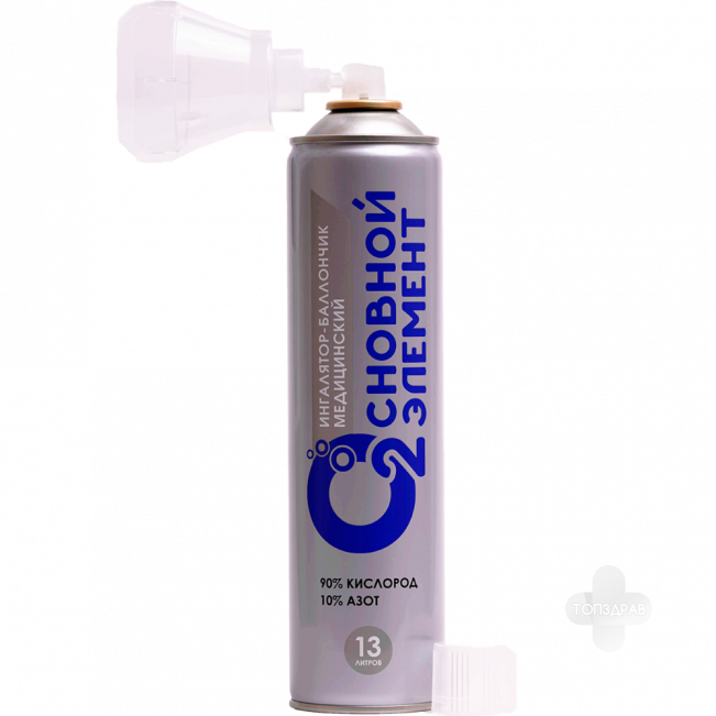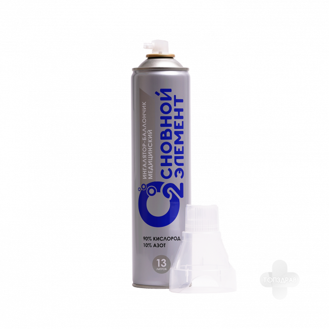 Ингалятор-баллончик медицинский с газовой кислородной смесью «ОСНОВНОЙ ЭЛЕМЕНТ» для индивидуальной кислородной терапии предназначен для кратковременной подачи газовой кислородной смеси с целью обогащения кислородом вдыхаемого воздуха при недостатке кислорода.
